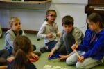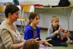 Uczniowie wykonywali najróżniejsze ćwiczenia rytmiczne, reagowali na zmieniające się grupy rytmiczne, śpiewali, poruszali się zgodnie z muzyką, a na koniec wspólnie z rodzicami wzięli udział w wykonaniu instrumentalnym utworu klasycznego.