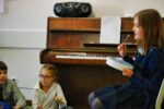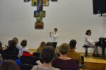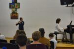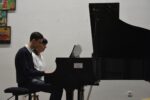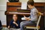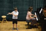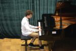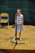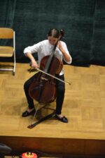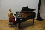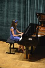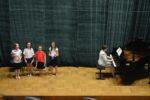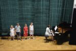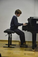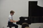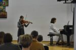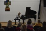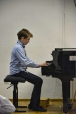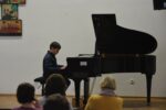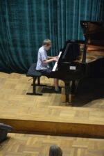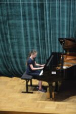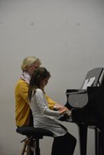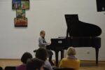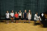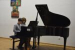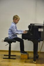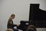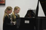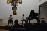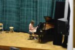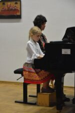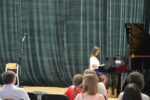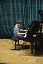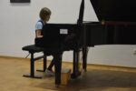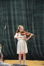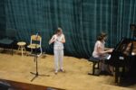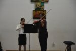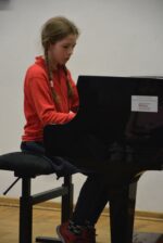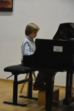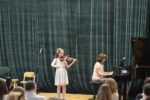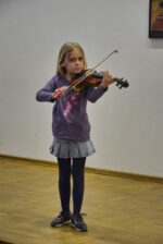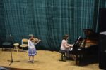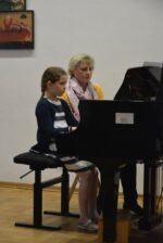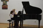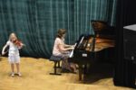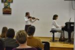 Nieco bardziej rozrywkowy charakter miała część „W duecie”. Usłyszeliśmy wiele melodii popularnych, w tym „Oh, Susannah”, czy „The Enterteiner” Scotta Joplina – również głównie w wykonaniu pianistów (na 4 ręce). Brzmienie tej części audycji urozmaicił duet skrzypcowy. W prezentacjach tych mieliśmy okazję obserwować zgrane duety uczniowsko-nauczycielskie, jednak największą owację otrzymał „tandem” rodzinny – uczeń z mamą 🙂