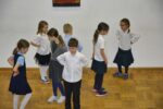 Koncert rozpoczął pokaz interpretacji ruchowej do Menueta z Symfonii dziecięcej Leopolda Mozarta w wykonaniu uczniów klasy I, przygotowanych przez p. Wandę Jelicz. Następnie uczniowie zaprezentowali różnorodne tańce – od dworskiego Menueta, Walca, przez argentyńskie Tango, po tańce tradycyjne – węgierskie, irlandzkie i żydowskie. Nie zabrakło też polskiego Krakowiaczka.