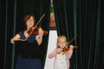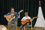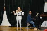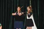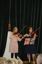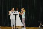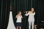 W zespołach instrumentalnych grali zazwyczaj uczniowie ze swoimi nauczycielami, choć mieliśmy również jeden występ rodzinny: ucznia z babcią 🙂 Tradycją naszego zespołowego muzykowania stały się już prezentacje samych nauczycieli. Popłynęły dźwięki fortepianu, skrzypiec, fletu i gitary… Usłyszeliśmy repertuar zdecydowanie rozrywkowy, przeważnie taneczny, zwiastujący nadchodzące wakacje 🙂